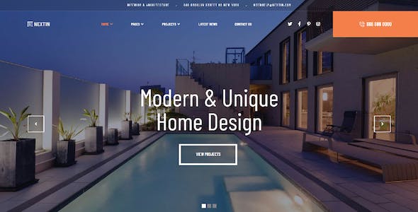 Mẫu website – Dịch vụ thi công kiến trúc, thiết kế nội thất Nextin